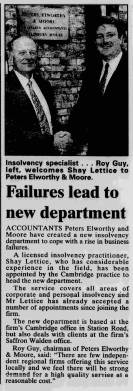 PEM launches our Insolvency service and recruitment of Shay Lettice to lead it.1998.